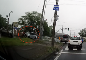 そのうちに後続の車が来たため、車を出せずにいました。