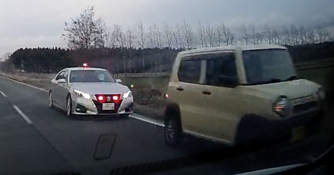 覆面パトカー(車種・トヨタクラウン・白)による交通違反取り締まりが行われていました。